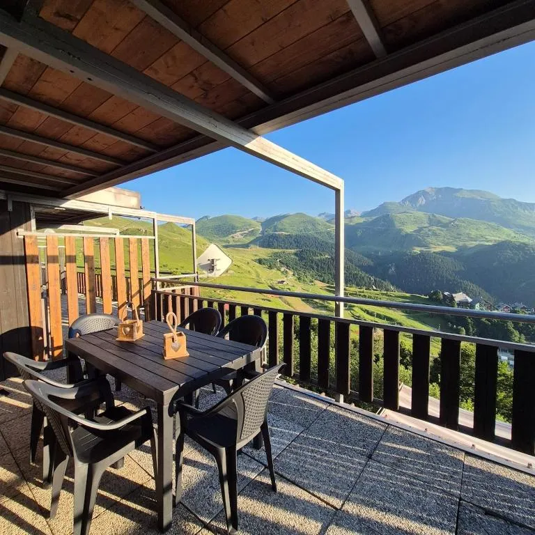 La seconda terrazza si affaccia sulla splendida conca di Prato Nevoso, regalando una vista mozzafiato sulle montagne circostanti — il luogo perfetto per rilassarsi, leggere o godersi un tramonto.