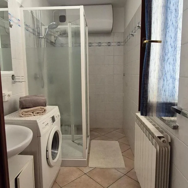 L’appartamento è composto da un luminoso open space con soggiorno e cucina, un bagno con doccia, e due camere da letto. Una camera ha due letti singoli e un grande armadio a muro, con accesso diretto a una delle due ampie terrazze. La seconda è una camera matrimoniale con un grande armadio, ideale per lo stoccaggio di indumenti e attrezzatura.